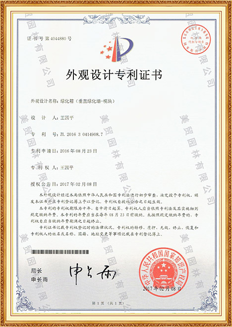 c7c7.com有限公司荣获多项专利及证书,包括外观设计,园林设计,产品设计等,产品经过国家质监局检测合格发放质检合格证书。